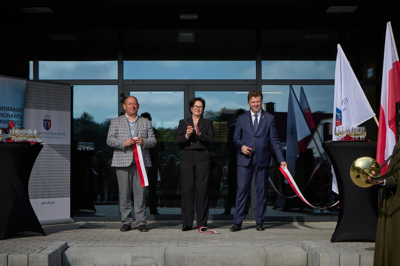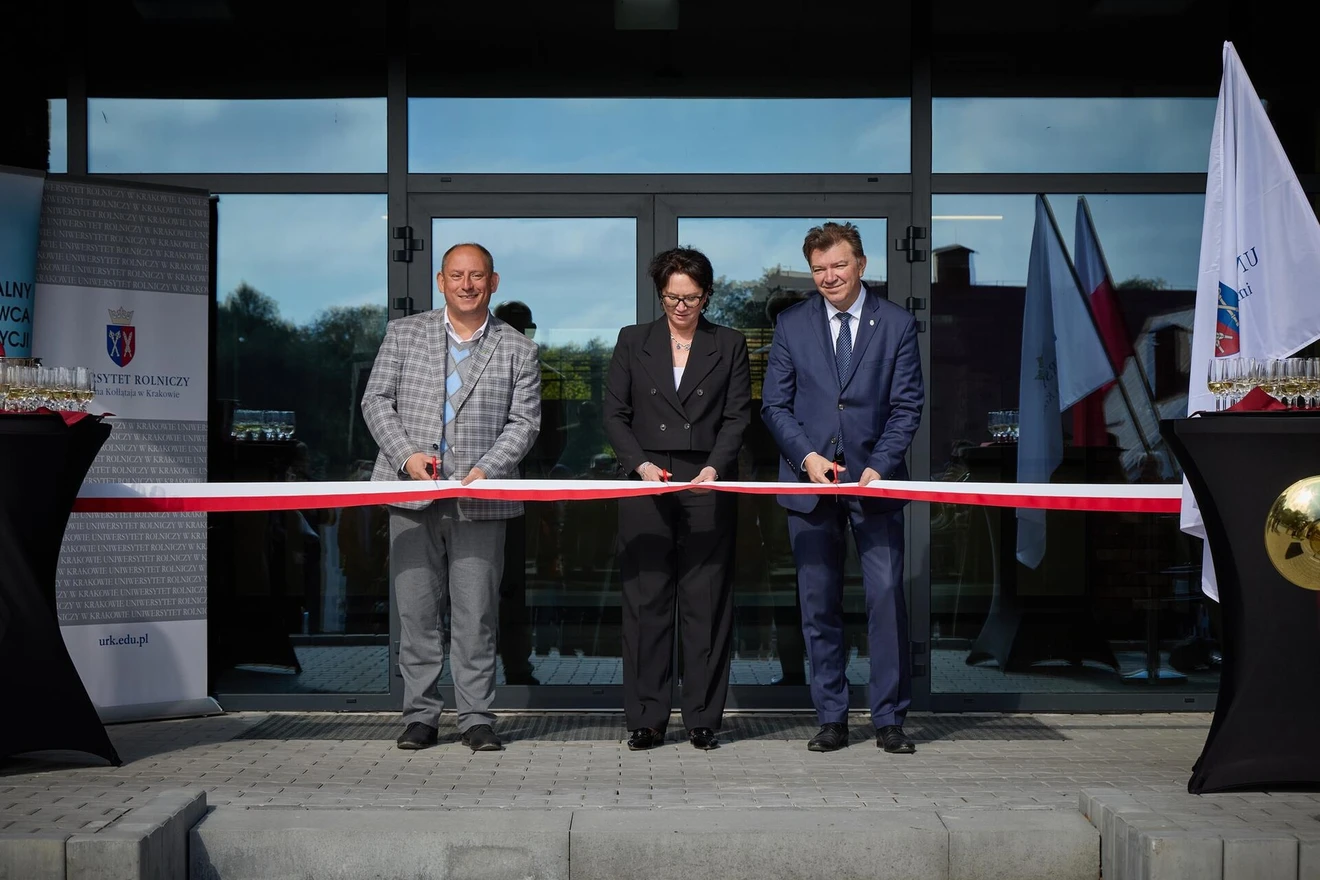Uroczystego przecięcia wstęgi dokonali: Wojewoda Małopolski Krzysztof Jan Klęczar, Prorektor ds. Współpracy, prof. dr hab. inż. Andrzej Sechman oraz Dziekan Wydziału Hodowli i Biologii Zwierząt, prof. dr hab. inż. Dorota Zięba-Przybylska.